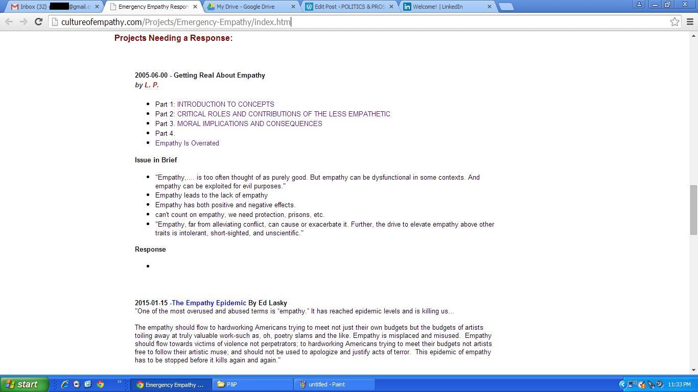 Rutsch demonstrates his failure to read and understand my posts in his listing of me as an “anti-empathy” author at his site for his emergency response team to deal with. Oh, so “Empathy leads to the lack of empathy” huh Edwin? Well, alrighty then! I wonder what other nuggets of wisdom he gleaned from glancing at my posts. Perhaps 1 + 2 = 4 also Edwin? This is so precious that I’ll include an image of this, just in case the summary at his site is ever fixed. (Click to enlarge images below.)
