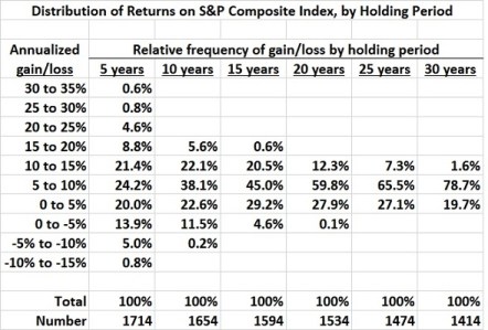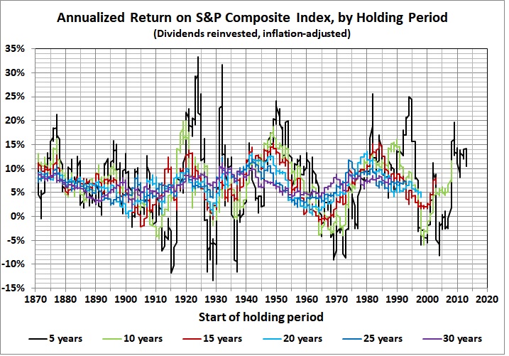 - Holding a broad-market index fund is never a sure thing. Returns fluctuate wildly. Impressive real returns (e.g., 20 percent and higher) are possible in the shorter run (e.g., 5-10 years), but so are significantly negative returns. Holding a fund longer reduces the risk of a negative return while also suppressing potential gains.