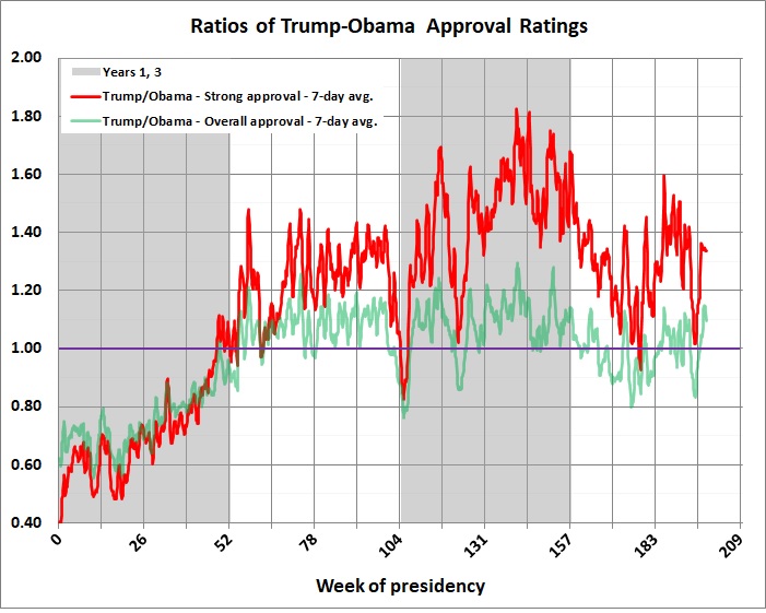 Trump’s standing with likely voters has, as measured by Rasmussen Reports, has rebounded to levels well above those attained by Obama at the same point in 2012: