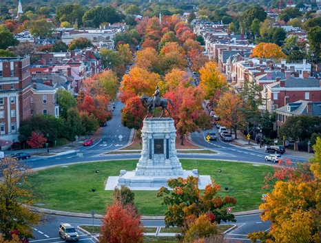 That’s the statue of Robert E. Lee, which with several of its kind used to grace the traffic circles along the boulevard. The boulevard was and is called Monument Avenue, but the name now rings hollow.