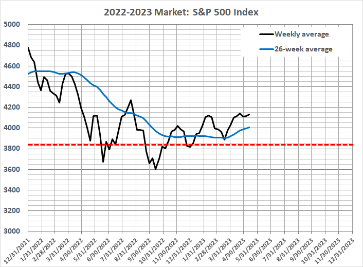 Since then, the index has risen, dropped, and risen again. Yesterday’s closing price of 4119.17 left the index almost 15 percent below its peak. Technically (and arbitrarily), the market is no longer in bear country, but that doesn’t mean that the bear market is over.