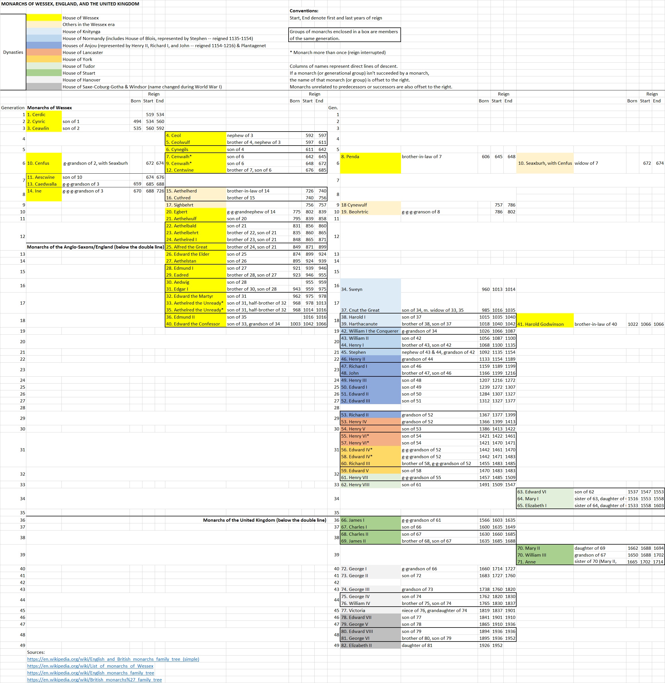 Monarchs of England Charles III is the 83nd monarch. His royal lineage goes back to Sweyn, the 34th monarch (b. 960, r. 1013-1014). Click on the image to zoom in. Share this: Click to share on X (Opens in new window) X Click to email a link to a friend (Opens in new window) Email Click to print (Opens in new window) Print Click to share on LinkedIn (Opens in new window) LinkedIn Click to share on Facebook (Opens in new window) Facebook Click to share on Reddit (Opens in new window) Reddit Click to share on Pocket (Opens in new window) Pocket Click to share on Telegram (Opens in new window) Telegram Click to share on Tumblr (Opens in new window) Tumblr Click to share on Pinterest (Opens in new window) Pinterest Click to share on WhatsApp (Opens in new window) WhatsApp Like Loading...