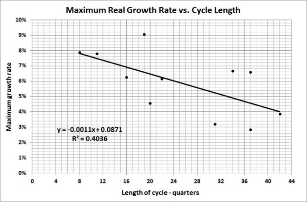 The following graphs depict the length of expansions and contractions (and the trends in both), before and since the creation of the Federal Reserve System in December 1913.