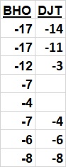 Trump’s slippage is also obvious in a straightforward comparison of strong-approval ratings, averaged over 7 days. It is now almost as low as Obama’s was at this stage 8 years ago, when Obama’s was holding steady before a sharp pre-election rise: